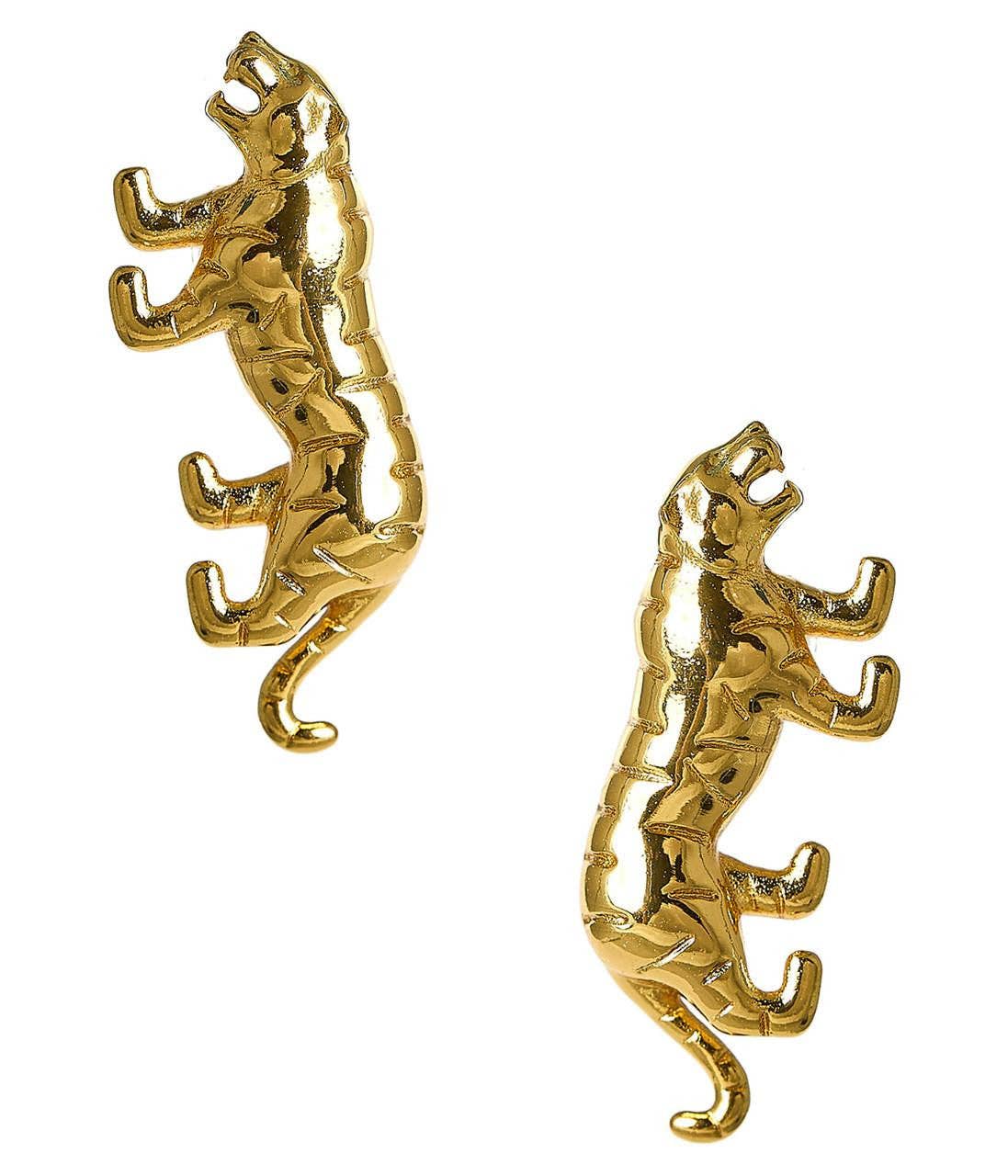 Perfect Tiger Stud now available in our Fall collection. Gameday New Arrivals Allergy friendly: Lead and nickel free - L: .5 in x W: 1 in -18k Gold Plated