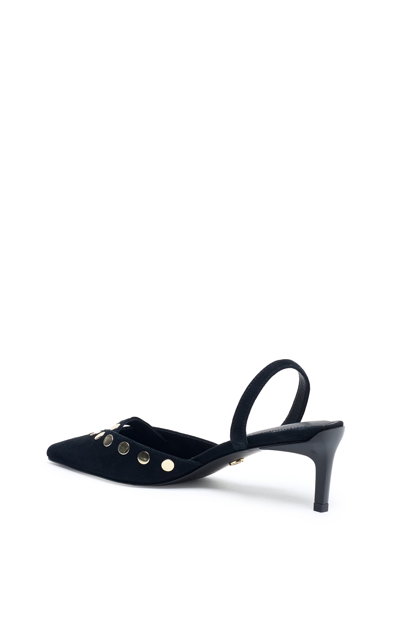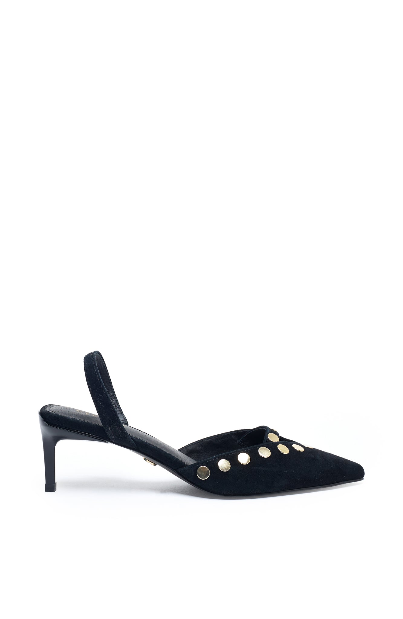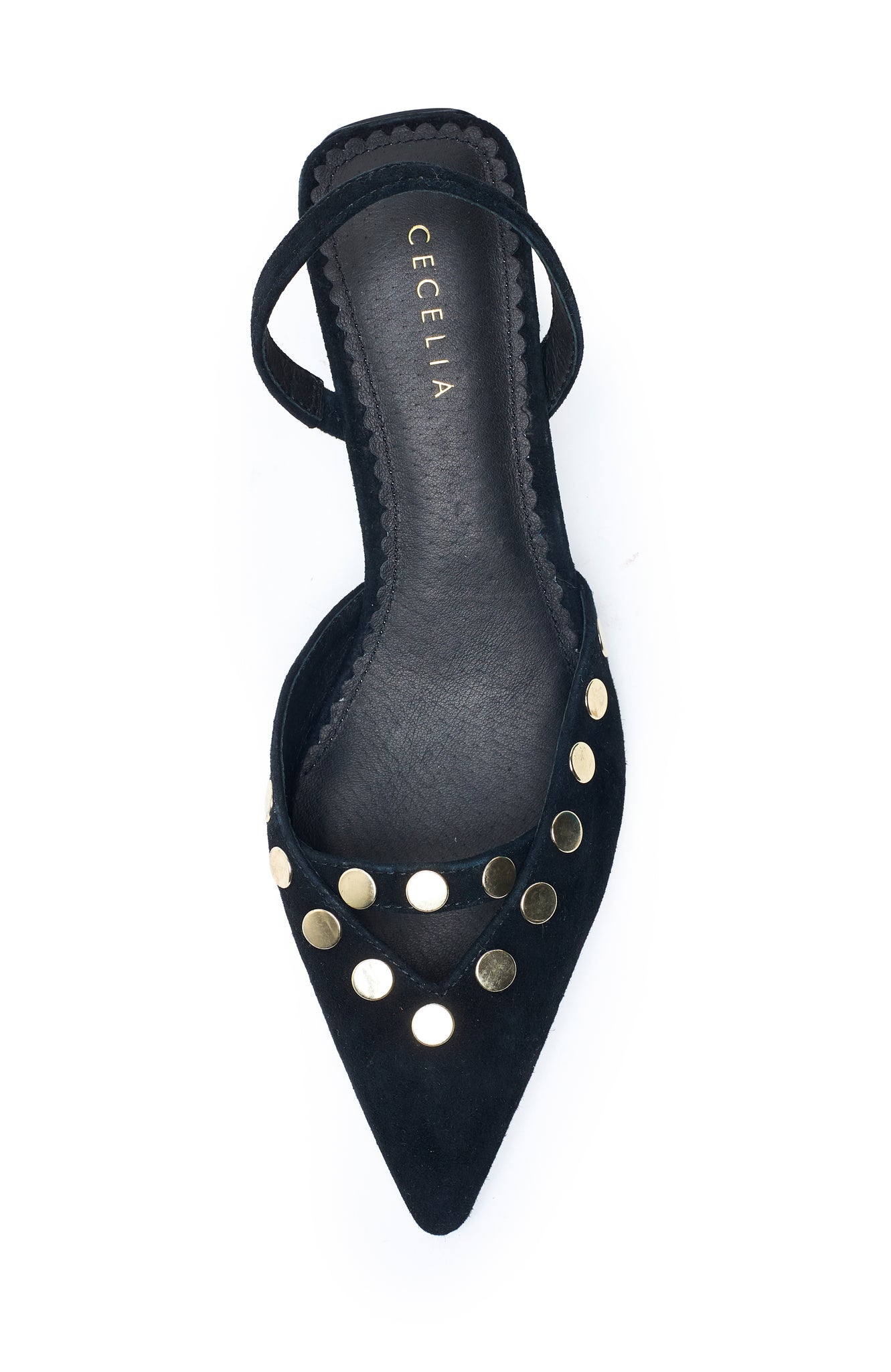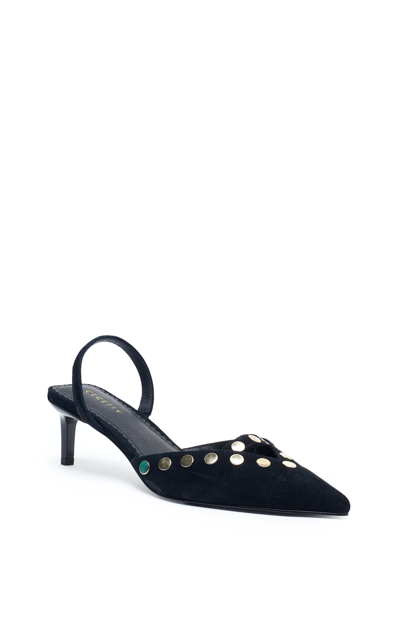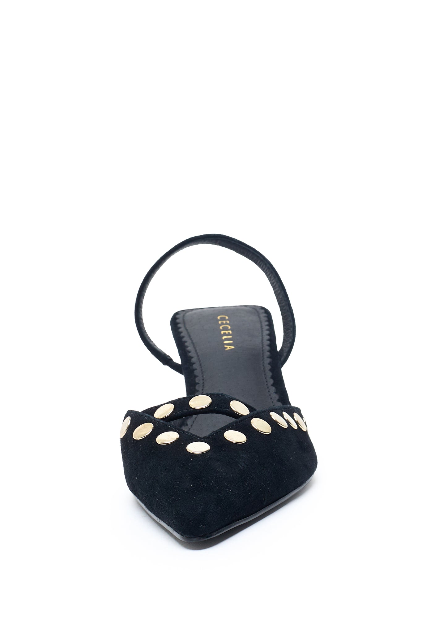 The Molly Heel by Cecilia New York delivers elevated style with everyday comfort. Designed in luxe suede, this standout heel features a bold block heel and eye-catching gold hardware that adds instant polish. The secure ankle strap ensures a comfortable fit, while the playful silhouette makes it a versatile shoe for both casual chic and evening looks