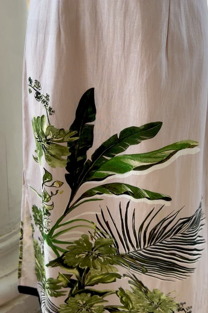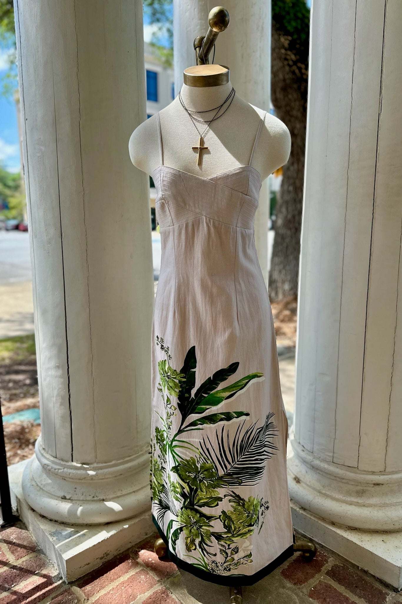 The Carlie Midi Dress by Anna Cate is a stunning slip-style midi that effortlessly blends feminine elegance with botanical artistry. Crafted in a cotton linen fabrication, this fitted dress features a placement botanical print with a contrast hem detail that makes it truly one-of-a-kind. A structured bodice with smocked back provides support and comfort, while adjustable spaghetti straps and side slits ensure ease of movement. Fully lined.