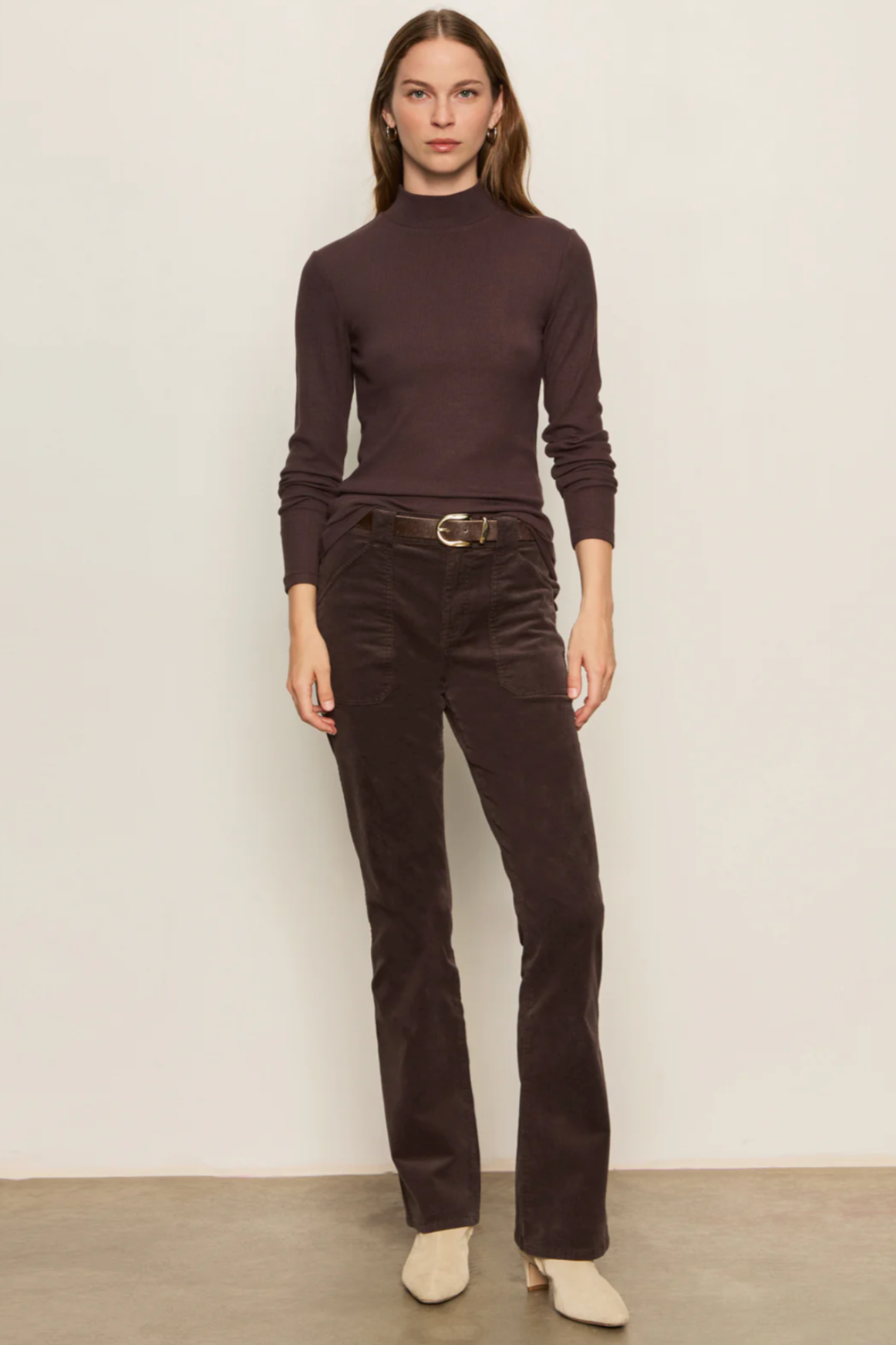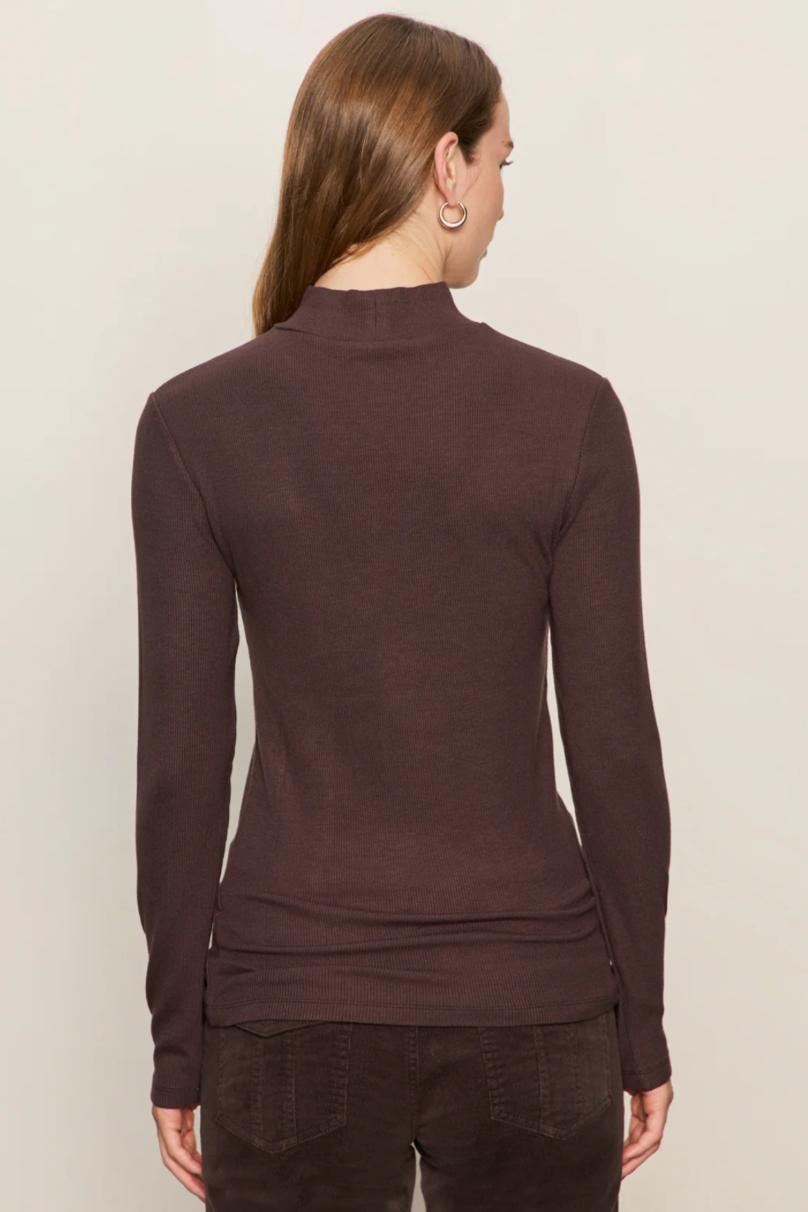 Model wearing the LS Mock Essential top by Sanctuary in long sleeve fitted silhouette with mock neck