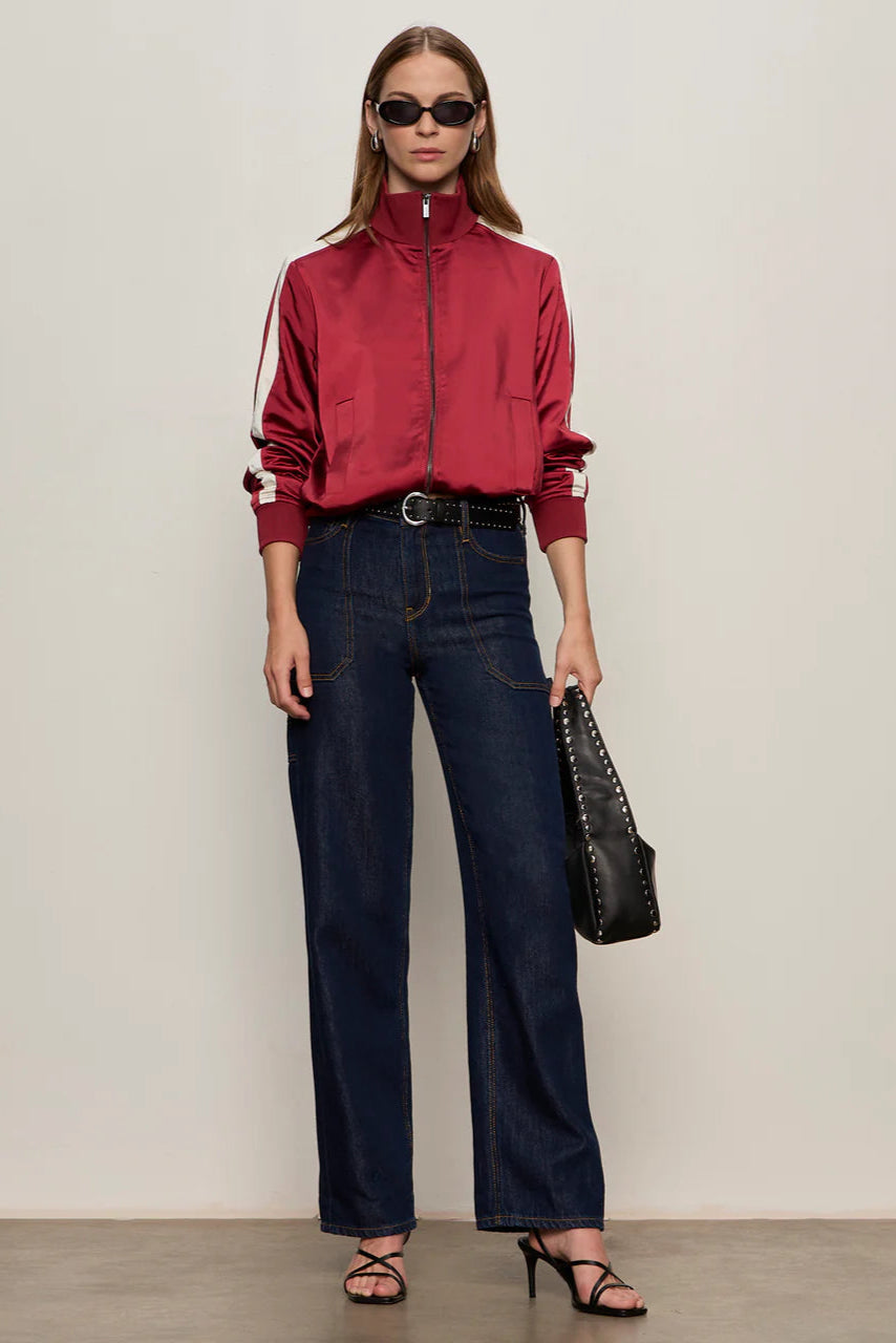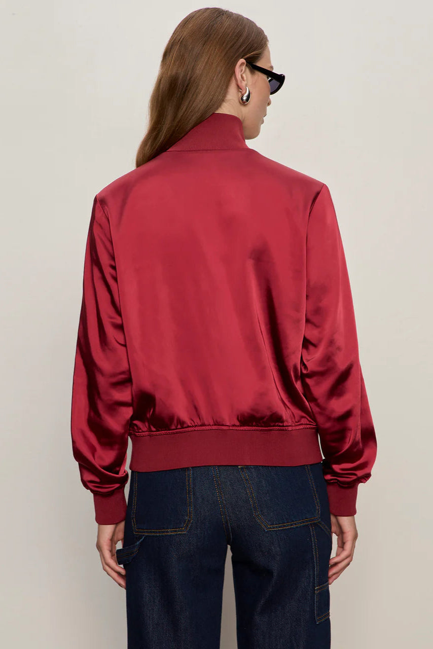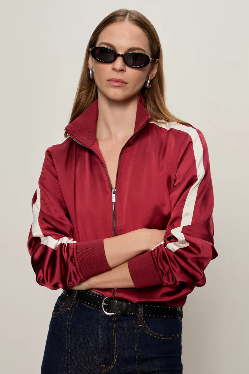 This Satin Track Jacket brings effortless style with its matte finish and sleek blade collar. The white trim on the sleeves adds a subtle pop, while ribbed cuffs and hem keep the relaxed fit comfortably in place. Two front slant pockets and a front zipper closure give it practical appeal without trying too hard. Perfect for laid-back days or layering up in style.