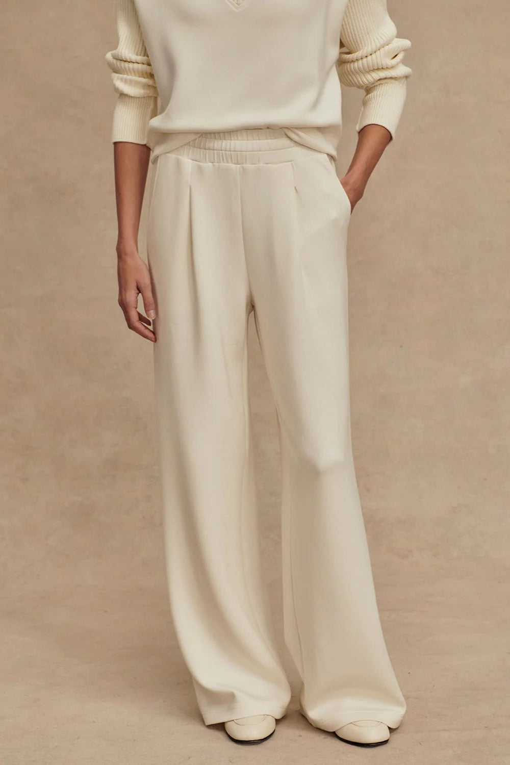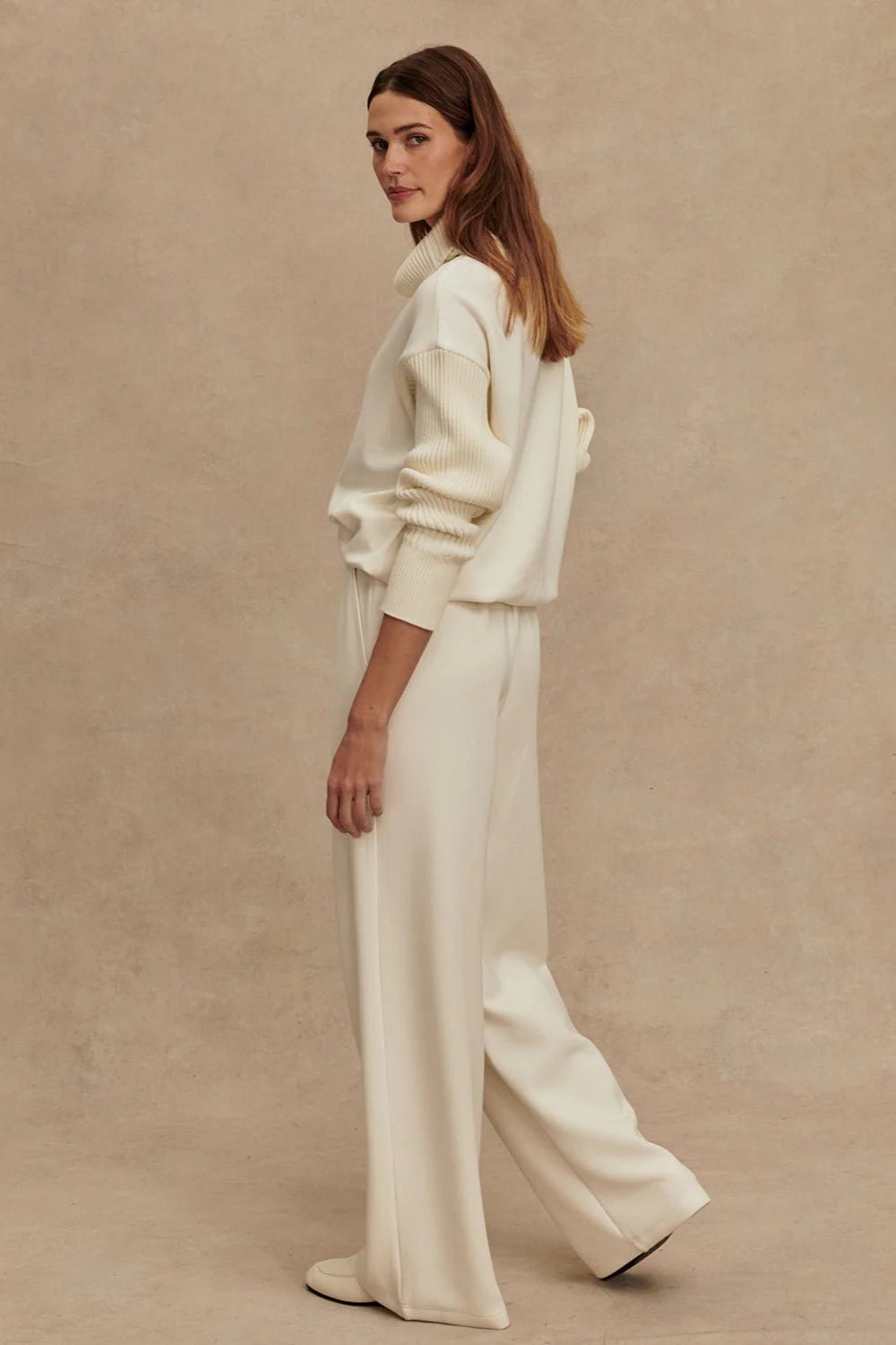The Extra Wide Leg Pants from Varley are where comfort meets modern polish. Designed in the soft neutral shade of Egret, these pants feature a dramatically wide-leg silhouette that flows with ease while elongating the frame. The mid-rise waist offers a flattering fit that feels secure yet relaxed, making them the perfect balance of structure and comfort.