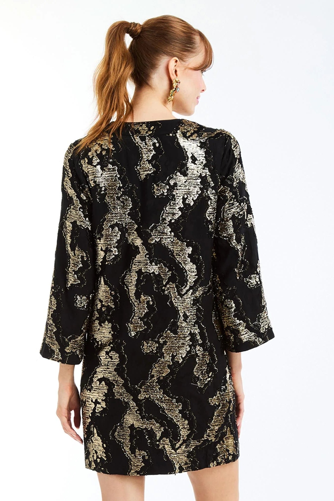 The Ines Caftan Mini Dress brings effortless style with its relaxed shift silhouette and djellaba-inspired notch collar—a nod to global design that feels fresh and intentional. Bracelet-length bell sleeves add a subtle flourish, while functional side pockets keep things practical. Slip it on via the easy pullover entrance and enjoy the comfort of a fully lined interior. Perfect for those who want to look put-together without trying too hard.
