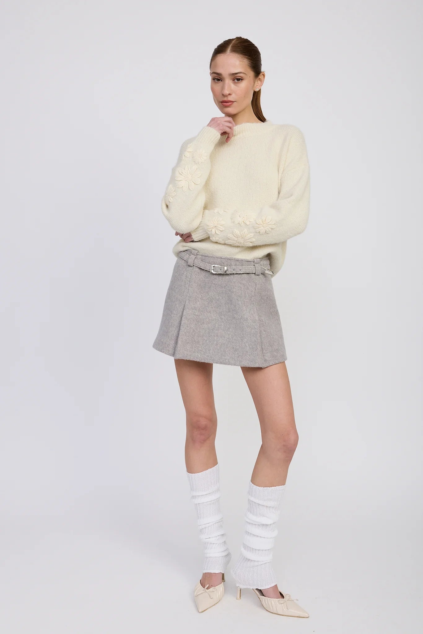 The Carrington Belted Wool Mini Skirt from En Saison blends classic tailoring with modern edge. Crafted in a warm wool blend, this mini skirt sits high at the waist and features a removable belt to cinch your shape. Its structured silhouette is both polished and playful, making it a versatile piece you can dress up with a blouse and boots or style casually with a sweater and sneakers.