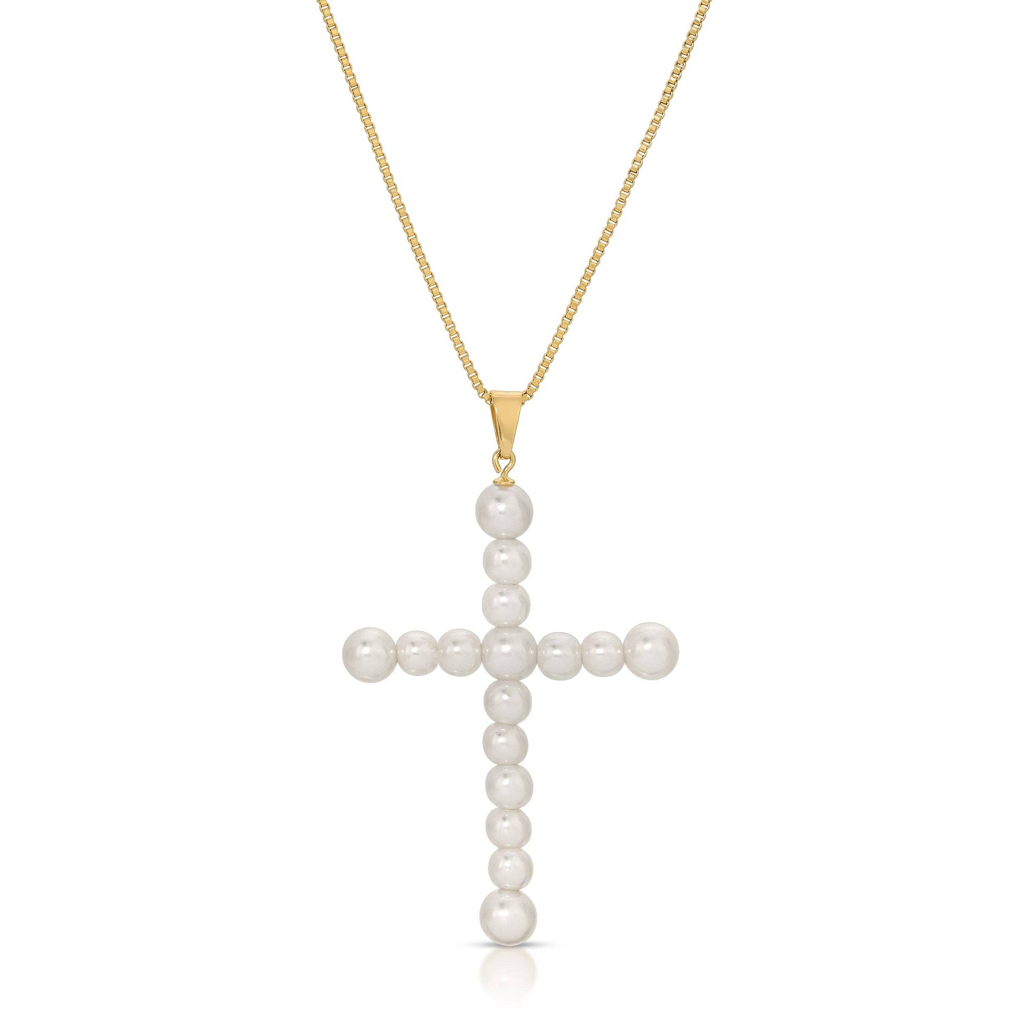 Stunning pearl cross charm hangs from 20 inches of box chain. *Pearl Cross *20 inch box chain